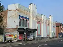 Cooper wanted to establish a film theatre to present his productions to the paying public, and acquired a public hall building on London Road that had originally been designed for a social institute in 1903 by the local architect Percival Blow (1873–1939). On 27 July 1908, Cooper opened the Alpha Picture House, Hertfordshire's first permanent cinema. The building was fitted out with a restaurant, swimming pool and hairdressing salon as well as the 800 seat cinema.[3] The cinema failed inspection following the passing of the 1910 Cinematograph Act and was sold through liquidation to George Arthur Dawson the following year. The cinema continued to run as the Poly until 1926 and was destroyed by fire the following year.[4][5]