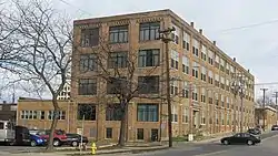 Built in 1918, the complex was originally home to the Osterlein Machine tool plant. In the 1930s, the Fashion Frocks dress company acquired the property and manufactured women's clothing.[2] Fashion Frocks also made parachutes during World War II. Currently, the complex is home to the American Sign Museum and loft apartments.[3]