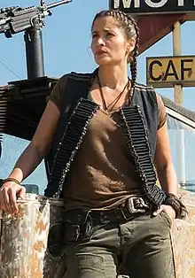 Ofelia is first seen when the Manawas find refuge with her family in their gated barbershop-home. The group inside the barbershop remains trapped, while a riot outside intensifies. While a riot rages outside, a mob sets fire to the store adjoining the barbershop, forcing the Salazars and Manawas to flee. The group reaches Travis' truck and escapes. Ofelia and her group join the Clarks. Ofelia tells Daniel they should flee with Travis, but Daniel insists his family can survive alone and will join his cousin later. Ofelia starts a brief relationship with Adam, an Army Corporal in the California National Guard. Griselda dies of septic shock at a hospital. She joins the group as they drive to the National Guard's headquarters to rescue Liza, Griselda, and Nick. Adams agrees to be their guide when let go by Travis. The group infiltrates the base. Travis, Madison, Daniel, and Ofelia go inside, while Alicia and Chris stay behind. Meanwhile, the walkers breach the perimeter defenses and swarm the base. Travis' group reach the holding cells and set the detainees free before reuniting with Nick, Liza, and Strand. They try to escape through the medical ward, where they discover Dr. Exner has euthanized all of the patients. Dr. Exner tells them of an escape route before presumably committing suicide. Before they can escape, the group encounters Adams, who shoots Ofelia in the arm. Enraged, Travis brutally beats Adams and leaves him for dead. Strand leads the group to his oceanside mansion, where he reveals to Nick that he owns a yacht which he plans to escape on, called the Abigail.