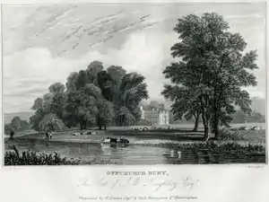 Jane Wightwick Knightley (d.1911) (Countess of Aylesford), heiress of Offchurch, married Heneage Finch, 6th Earl of Aylesford (d.1871).[8] of Packington Hall in Warwickshire. The Countess of Aylesford died in 1911 and bequeathed Offchurch to her younger grandson Captain the Hon. Charles Daniel Finch (1886-1958), second son of Charles Wightwick Finch, 8th Earl of Aylesford (1851-1924). In 1912 in accordance with the bequest he changed his surname to Finch-Knightley. On the death of his nephew the 9th Earl in 1940 (killed in action), he would inherit the earldom, and become Charles Daniel Finch-Knightley, 10th Earl of Aylesford. In 1917 Charles Daniel Finch-Knightley sold the Offchurch Bury estate, with 2,610 acres including "the beautiful old Henry the Eighth mansion standing in the park of about 230 acres, 14 capital farms and residential properties".[25]