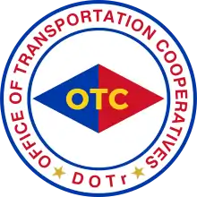 The Office of Transportation Cooperatives (OTC) is a government agency of the Philippines mandated to promulgate and implement rules and regulations that governs the promotion, organization, regulation, supervision, registration through accreditation and development of transportation cooperatives which are subject to the approval of the Department of Transportation. It is created through Executive Order No. 898, signed by then President Ferdinand Marcos on May 28, 1983.[1]