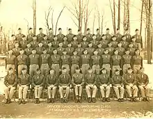 On 27 September 1941, the first Infantry OCS class graduated 171 second lieutenants; 204 men started the 17-week course in July.[11] Testament to the ability of OCS to produce new second lieutenants quickly can be found in War Department decision that ROTC could not fulfill the national demand for officers; so in May 1943, the advanced course in ROTC was suspended and basic course graduates were immediately sent to OCS so they could be commissioned sooner.[12]