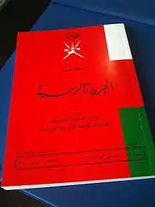 The Official Gazette (Arabic: الجريدة الرسمية Al Jareedah Al Rasmeeyah) is a weekly publication issued by the Ministry of Legal Affairs in pursuance of the Law of the Official Gazette issued by Royal Decree 84/2011.[1]