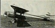 The trimotor Osprey was a monoplane with a high, three-part wing of rectangular plan out to blunted tips. Its centre section contained two 45 US gal (37 imp gal; 170 l) fuel tanks and extended as far as the outer engines. The trailing edges of the outer panels were filled with narrow chord ailerons. The wing was built around twin spruce box spars with spruce ribs and was fabric covered, though its leading edges were spruce plywood. The outer panels were braced from the lower fuselage longerons by parallel pairs of struts to the spars which ran through the outer engine mountings. The engines were further braced with central struts to the upper longerons.[1][2]