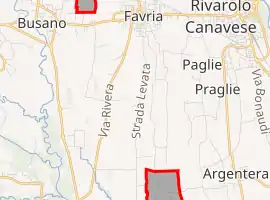 Oglianico is a comune (municipality) in the Metropolitan City of Turin in the Italian region Piedmont, located about 30 kilometres (19 mi) north of Turin. Oglianico borders the following municipalities: Salassa, Rivarolo Canavese, San Ponso, Busano, Favria, Rivarossa, and Front.