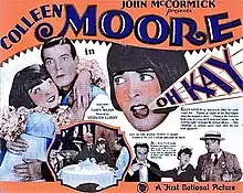 Oh, Kay! is a 1928 silent film produced by John McCormick and distributed by First National Pictures. McCormick's wife Colleen Moore starred and Mervyn LeRoy directed the film.[1] It is based on the 1926 musical Oh, Kay!, which had music by George Gershwin, lyrics by Ira Gershwin, and a book by Guy Bolton and P. G. Wodehouse.