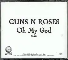 "Oh My God" is a song by Guns N' Roses released in 1999 on the soundtrack to the film End of Days. The song was sent out to radio stations in November 1999 as a promo for the soundtrack and the band. Despite being the band's first recorded release in almost five years, it was never issued as a stand-alone single for public retail.