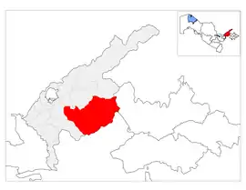 Ohangaron is a district of Tashkent Region in Uzbekistan. The capital lies at the city Ohangaron, itself not part of the district.[1] It has an area of 3,180 km2 (1,230 sq mi)[2] and it had 97,000 inhabitants in 2021.[3] The district consists of 4 urban-type settlements (Yon-ariq, Qora Xitoy, Telov, Eyvalek) and 8 rural communities (Uvaq, Birlik, Doʻstlik, Qurama, Qora xitoy, Ozodlik, Susam, Telov).[1]
