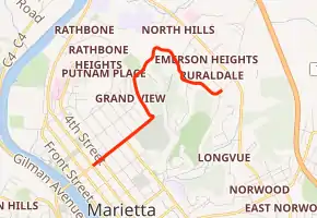 The entire route was in Marietta, Washington County.