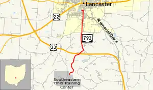 State Route 793 (SR 793) was a state route in the US state of Ohio that served as a connector route from Southeastern Ohio Training Center near Lancaster through Fairfield County to U.S. Route 33 (US 33) in Lancaster. SR 793 was originally designated in 1959. The route was decommissioned in 2006.