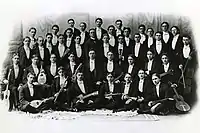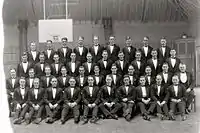 The informal beginnings of the Men's Glee Club date back to 1873, the first year the university was open to students.[10] At the time, the group was little more than a social club, but by 1875, with the opening of the North Dorms, Ohio State's student newspaper, The Lantern, began making significant references to an organized chorus operating within the dorms. Since the dorms would have been occupied solely by men, it is likely that the membership of this chorus significantly overlapped with the Glee Club.[11] Although dates listed on early recorded albums corroborate the Men's Glee Club's founding date of 1873, the official date is listed as 1875 due to the foundation of the North Dorms chorus. Thus, the Men's Glee Club is the second-oldest currently active student organization on Ohio State's campus, the oldest being the Agricultural Education Society.[12]