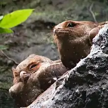 One such colony in Ecuador held a population of a hundred birds in a canyon with ledges protected by vegetation.[12] Some smaller caves and gorges are used only for roosting.[6] While it was once thought that oilbirds always or nearly always roosted in caves, canyons or gullies, researchers placing GPS trackers on non-breeding birds found that they regularly roost in trees in the forest as well as in caves.[13]