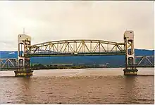 Completed in 1958, the bridge was the first of its kind in Canada. The bridge was partially funded through tolls, which were collected from its opening until April 1, 1963.[1] Originally the bridge only had 2 lanes, (1 in each direction), but in 1984 the bridge deck was reconfigured and a third lane was added. This new lane became a counter-flow lane, and would allow the lanes to adjust to traffic demand at different times of the day. In 1991 the bridge underwent major electrical repairs and a breakwater was removed.