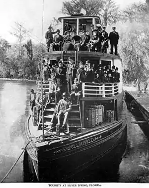 The Okeehumkee, also known as "Queen of the Ocklawaha River," was a river steamboat that provided transportation along Florida rivers in the late 19th century. The Okeehumkee was equipped with a paddle wheel positioned in the lower stern part of the boat which allowed it to traverse narrow and shallow rivers.[3] The steamboat was the longest-serving craft of its type on the Ocklawaha River route, remaining in service for 43 years.[4][5]
