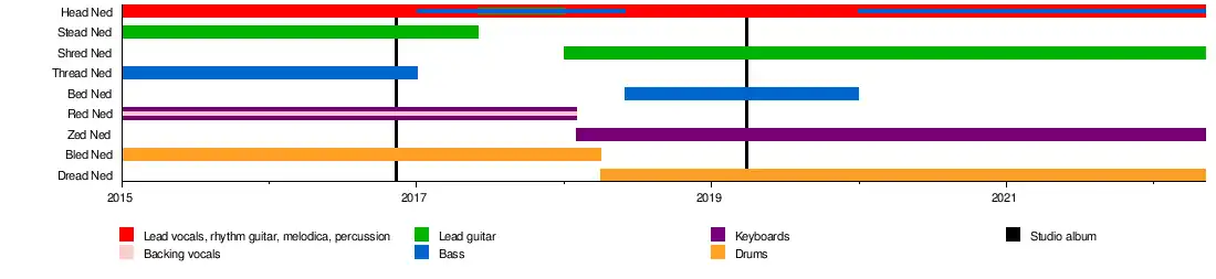 | Past members | Red Ned Stead Ned Shred Ned Thread Ned Bed Ned Bled Ned |
