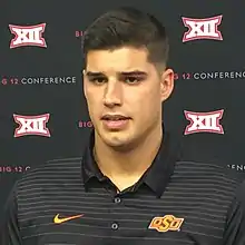 The Oklahoma State Cowboys football statistical leaders are individual statistical leaders of the Oklahoma State Cowboys football program in various categories,[1] including passing, rushing, receiving, total offense, defensive stats, kicking, and scoring. Within those areas, the lists identify single-game, single-season, and career leaders. The Cowboys represent Oklahoma State University–Stillwater in the NCAA Division I FBS Big 12 Conference.