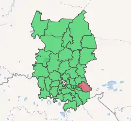 Okoneshnikovsky District (Russian: Оконе́шниковский райо́н) is an administrative[1] and municipal[6] district (raion), one of the thirty-two in Omsk Oblast, Russia. It is located in the southeast of the oblast. The area of the district is 3,100 square kilometers (1,200 sq mi).[2] Its administrative center is the urban locality (a work settlement) of Okoneshnikovo.[1] Population: 14,791 (2010 Census);[3] 17,280 (2002 Census);[8] 19,744 (1989 Census).[9] The population of Okoneshnikovo accounts for 35.2% of the district's total population.[3]