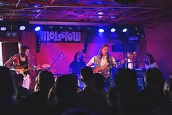 Okta Logue are a four-piece rock band based in Griesheim, Hessen Germany. The members consist of Benno Herz (bassist/vocalist), his brother Robert Herz (drums), Philip Meloi (lead guitarist), and Max Schneider (organ, synthesizers). Their style is often referred to as being influenced by '60s psychedelic rock bands mixed with modern indie rock elements.[1]