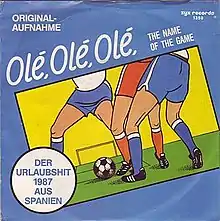 In 1987, Roland Verlooven produced an internationally popular version of the song, "Olé, Olé, Olé (The Name of the Game)", performed by a musical group called "The Fans".[22] The song was released in Spain by label Discos Games, and in Germany by ZYX Records. In Austria, The Fans' version reached No. 21 and in Sweden, it reached No. 3 in their respective national charts in 1988.[23] This "Olé, Olé, Olé, Olé" chorus of this song became the chant commonly used all over the world.[1]