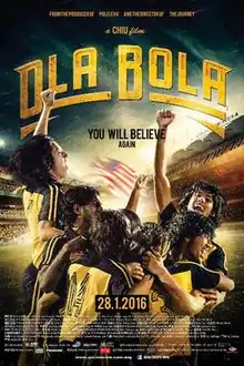 Ola Bola is a 2016 Malaysian sports football film directed by Chiu Keng Guan. The film was inspired by the glories of the Malaysia national football team which successfully entered the 1980 Summer Olympics. The film was released in Malaysian cinemas on 28 January 2016. As of November 2019, Ola Bola is currently ranked the tenth-highest grossing Malaysian film of all-time.