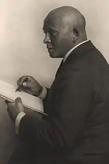 Simplicissimus editors Franz Schoenberner and Thomas Theodor Heine have claimed that Gulbransson actively cooperated with the Nazis from 1933 on, and this co-operation was sharply criticized by the writer Klaus Mann.[2] During World War II, after his own home country was occupied by the Germans, he produced caricatures against the Allies, in particular against Winston Churchill. In 1941 he was made an honorary member of the Society of Berlin Artists and in 1942 of the Academy of Fine Arts Vienna. On the occasion of his 70th birthday in 1943 he was awarded the Goethe Medal for Art and Science and was made Emeritus Professor of the Academy of Fine Arts, Munich.