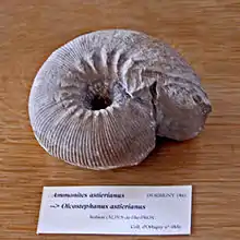 | Fossil of Olcostephanus astierianus from France, on display at Galerie de paléontologie et d'anatomie comparée in Paris | |
