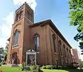 Old Brick Church, once known as First Presbyterian or North Presbyterian, is an event venue in Iowa City, Iowa. One of the few surviving pre-Civil War structures in Iowa City, Old Brick was built in 1856 at the site of an older Presbyterian church that had burned. Its steeple was demolished in an 1877 wind storm, it was rebuilt with a crenellated belfry, giving it a distinctive appearance. Last used as a church in 1970, Old Brick was listed on the National Register of Historic Places in 1973 as North Presbyterian Church. In 1974 the University of Iowa purchased the property and intended to demolish the church to make way for a parking lot, but public protest prevented the demolition. This public protest manifested in the formation of Friends of Old Brick, the organization that purchased the structure in 1977. Old Brick changed ownership again in 1987, when Old Brick Episcopal Lutheran Corporation (the current owner) purchased the building. Old Brick now thrives as an event venue and community center, hosting such diverse events as weddings, memorials, religious services, academic lectures, humanitarian fundraisers, and dance lessons. Old Brick also houses several non-profit offices.[2]