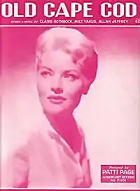 "Old Cape Cod" is a song written by Claire Rothrock, Milton Yakus and Allan Jeffrey that was published in 1957. The single, as recorded by Patti Page, became a gold record, having sold more than a million copies. Hailed by Cape Cod natives as the "unofficial Cape Cod Anthem, if ever there was one,"[1] the song has been credited with "putting the Cape on the map" and helping to establish Cape Cod as a major tourist destination.[2]