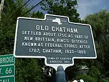 1. Davenport, Arthur (1969-06-15). "An Uncertain Centennial For Chatham" (payment for complete article). The New York Times. p. XX7. Retrieved 2009-05-11. The original Chatham changed its designation to Old Chatham. [...] The tiny village of Old Chatham, from which the present Chatham appropriated its name...