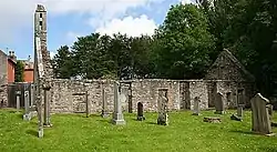 The buildings were designated a scheduled monument in 1934;[3] the burial grounds were designated a Category A listed building in 1972.[4]