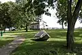 George Rogers Clark built a cabin in 1803, in order to live independently from his sister in Locust Grove. He had built a mill on the property at Mill Run.[2] Visitors to the cabin included Aaron Burr, John James Audubon, and various Indian chiefs. After his accident in 1809 he was forced to leave his cabin for good. The original cabin was lost in 1854.[3] In anticipation of the Bicentennial events for the Lewis & Clark Expedition, in 2001 a reconstruction of Clark's cabin was built, as this was where Meriwether Lewis and Clark's brother William met to start their epic journey.[2]