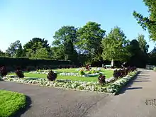 The park has six free tennis courts, a bowling green with a pavilion, a children's playground, a café and a car park (off Manor Close). It has formal gardens, grassed areas, rockeries, and a tree trail. Some of the trees are from California, such as a Monterey pine and a Brewer's weeping spruce, planted in the nineteenth century.[2]