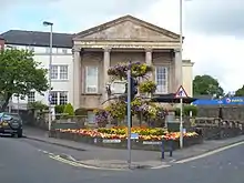 The foundation stone for the building was laid by a local magistrate, Charles Knox, on 24 November 1850.[1] It was designed by Stewart Gordon in the Neoclassical style, built by Constantine Dornan and was completed in 1852.[2] The design involved a symmetrical main frontage facing the corner of Castlerock Road and Captain Street Lower; the central section featured a tetrastyle portico with Doric order columns supporting a frieze and a pediment.[1] A plaque carved with the date "1852" was carved into the stonework above the doorway.[1] A small bridewell was added in 1859.[1] Rowan observed that "the columns [were] too closely spaced for comfort".[3]