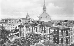 The Hillsborough County Courthouse was constructed in 1892 in the block bounded by Madison Street, Lafayette Street (now Kennedy Boulevard), Florida Avenue, and Franklin Street. This replaced an older courthouse in the same place.[1] Designed by John A. Wood, it included some of the Moorish architectural styles and domes similar to the Tampa Bay Hotel, which was also designed by Wood, across the Hillsborough River. It was demolished in 1953[2][3] and replaced with the current Hillsborough County Courthouse, four blocks to the east.