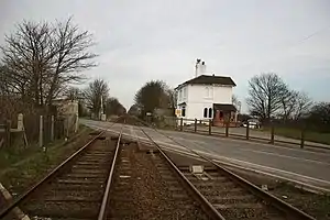 The station was opened on 2 October 1848 as Hob Hole,[4] but was renamed one month later as Leake and Wrangle.[5] The name changed again less than one year later in October 1849 to Old Leake and Wrangle,[6] before becoming simply Old Leake in October 1852.[6] The village of Old Leake lay to the east of the line, whilst Wrangle is 1½ miles to the north-west.[7] The station was constructed by Peto and Betts civil engineering contractors who, in January 1848, had taken over the contract to construct the section of the East Lincolnshire Railway between Louth and Boston from John Waring and Sons.[8] This section was the last to be completed in September 1848 at an agreed cost of £123,000 (£12.6 million in 2020).[8] At the time, Old Leake village consisted of little more than an inn and the station itself.[7] The July 1922 timetable saw five up and four down services, and one Sunday service each way, call at Old Leake.[9] The station was closed to passengers on 17 September 1956[6] and to goods traffic on 15 June 1964.[10]