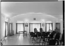 In 1850 Benicia was the original County seat of Solano County, and the first floor of the Hall was used as the Solano County court room and offices prior to the completion of Benicia's city hall. The second-floor rooms, with remarkable ornate woodwork made by California frontier craftsmen, was used for the Lodge.[3]