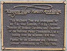 Old Mulberry Tree at Reeves Point is a tree in the Australian state of South Australia located at Reeves Point in Kingscote on Kangaroo Island. The tree, which was planted as early as 1836, probably by Charles Binden Powell,[1] is associated with the first official European settlement of South Australia and is the oldest surviving fruit tree in the state.