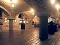 The ground floor housed the so-called "rich stalls" and bread benches in the eastern wing. The western wing housed the cloth hall. There is a room of the former city scales in the north-eastern corner, in the northern wing, east of the passage, a former courtroom is located. Most of the rooms on the ground floor are vaulted. The outer sections of each wing of the city hall (both from the side of the Market Square and the courtyard) were occupied by rows of small commercial stalls, built inwards, originally open only to the outside and not connected to the rest of the ground floor rooms. This forced a unique way of lighting the rooms located in the middle of the wings (bread benches, cloth halls and others) by means of windows located above the roofs of these stalls.