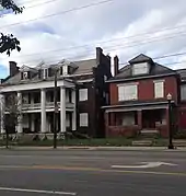 The W.H. Jones Mansion, Central Assurance Company, East Broad Street Commercial Building, and Orebaugh House, all represent "over half a century of distinct architectural styles". The Jones House sits on a stone foundation, with a slate roof, gables set above a circular tower flanked by tall, decorated chimneys. The Central Assurance Insurance Company is a 1940s Art Deco style building. Next to it is the Tudor style half-timbered 1920s mixed use East Broad Street Commercial Building, which housed the Jong Mea Restaurant. The downstairs portion was the family-run restaurant and the upstairs was the family's residence. Finally, the Orebaugh House, an 1880s Italianate home with a L-shaped porch and frieze style windows.[10]