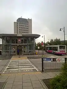 Oldham bus station is a bus station located in the town of Oldham in Greater Manchester. The bus station is found on Cheapside at the junction of West Street. The bus station opened in January 2001[1] and replaced the previous bus station at Town Square and the bus stops on Cheapside and West Street. The bus station is run by Transport for Greater Manchester.