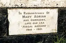 Molly Weston a heroine of the 1798 rebellion was born near Oldtown. She fought alongside her three brothers at Tara. A memorial was erected to her memory at Oldtown during the 1798 Bi-Centennial in 1998. "Arrayed in green... mounted on a white horse, [she] rode hither and thither upon the field with drawn sword in hand, rallying the pikemen and leading them in successive charges with the utmost fearlessness." (Patrick Archer, Fingal in 1798). She wore a green riding costume, with gold braid in the manner of a uniform and a green cocked hat with a white plume. She was armed with sword and pistols and was accompanied by her four brothers when she rode into battle. Weston rallied and regrouped the stricken pikemen; she placed herself at their head and led repeated charges against the Reagh Fencibles. "She fired a big gun captured from the Fencibles during the course of the battle, killing eleven of their number. Molly died along with her four brothers at the Battle of Tara. Her side-saddle was recovered from the battlefield.