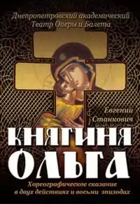 The second act is a story about Olga's reign, the most important moment of which was a trip to Constantinople and the adoption of Orthodox Christianity. The climactic scene is the final apotheosis, in which Olga, Madonna-like on a cross-shaped icon, holds her little grandson Vladimir in her arms.[7]