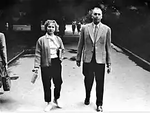 Lepeshinskaya married a Soviet intelligence MGB general Leonid Raykhman (known as the handler of Nikolai Ivanovich Kuznetsov). He was arrested on 19 October 1951 as an alleged participant in the fabricated Zionist Plot in MGB. Lepeshinskaya claimed that her appeals to Stalin saved the life of her husband.[8][9] In March 1953, after Stalin's death, Raykhman was freed, rehabilitated and appointed the head of MVD Control Commission. In August 1953, he was arrested again that time for his own fabrications of criminal cases, tortures of prison inmates and other violations of the "Socialist Law". He was sentenced to five years in prison in August 1956 but amnestied in November 1956. After that, he did research work in astronomy.[10]