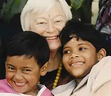 In 1990, she founded the Nepalese Youth Opportunity Foundation (NYOF), a nonprofit organization registered in the United States, to provide the most impoverished children of Nepal with education, housing, medical care, and human rights. The organization later changed its name to Nepal Youth Foundation, or NYF. NYF leverages the money from developed countries to maximize the aid for these children. In addition to scholarships for children who live in Kathmandu and rural Nepal, from grammar school to medical school, NYF implements a range of other programs to help Nepali children. For example, NYF's Indentured Daughters Program rescues girls from being sold as bonded servants and pays for them to attend school.[6] The Nutritional Rehabilitation Homes restore severely malnourished children to full health while educating their mothers in child care and nutrition. NYF also operates a children's home in Kathmandu named Olgapuri Village.[7]