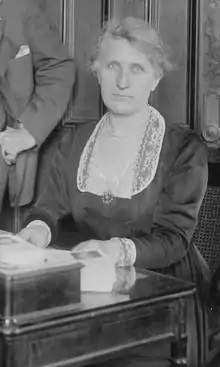 As of 1918, she chaired the Employment Department of the New York Mayor's Committee of Women on National Defense, in which capacity she "ma[de] a special attempt to place plain, middle-aged women in war work."[15][lower-alpha 1]