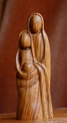 Today, the art continues to be a major source of income for Bethlehem's Palestinian Christian residents and is the most profitable tourist product in the city with the main purchasers being Christian pilgrims visiting in Christmas time.[3] Olive wood is carved into crosses, boxes, picture frames, covers for historical and old books, candle holders, rosaries, urns, vases and Christmas ornaments as well as scenes of the Holy Family.[3] Olive wood branches are supplied by olive groves in nearby villages as well as from the Nablus and Tulkarm region, despite the difficulty of transportation in the West Bank.[3]