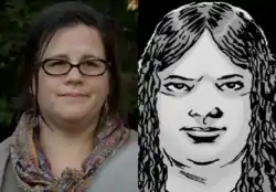 ![]() Olivia, as portrayed by Ann Mahoney in the television series (left) and in the comic book series (right). | |