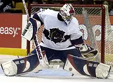 Michaud played one game in the National Hockey League (NHL) with the Montreal Canadiens during the 2001–02 NHL season. His appearance was due to the loss of Jose Theodore and backup Jeff Hackett to injury, and Michaud became an emergency call-up from his junior team to back up third-string Mathieu Garon. Michaud relieved Garon for one period, making 14 saves in 18 minutes of action while not giving up a goal. This appearance made him the youngest player to ever tend goal for the Canadiens and second-youngest goaltender to play in the NHL.[2] He resides in Montreal, where he operates a goaltending school, Ecole de Gardiens de But Olivier Michaud.