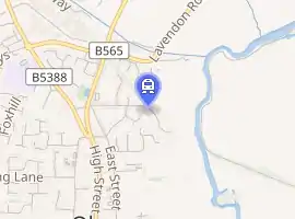Exchange sidings were laid at Olney to handle the traffic and a small engine shed opened in the early 1890s to house the Midland locomotive which worked the short-lived passenger service to Towcester.[9][28] Near the shed was a 50-foot (15 m) diameter turntable where the S&MJR's locomotives had to be turned as the running powers did not extend beyond Olney.[29][30][31][9][11] The shed officially closed in 1928 but engines continued to be serviced here until the mid-1950s.[9][11]