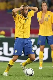 Erik Olof Mellberg (pronounced [ˈûːlɔf ˈmɛ̂lːbærj]; born 3 September 1977) is a Swedish football manager and former professional player. During his career, Mellberg played as a defender, and is best known for his time at Aston Villa, as well as spells with Juventus and Greek side Olympiacos. Mellberg played for Sweden in the 2002 World Cup and 2006 World Cup, as well as the Euro 2000, Euro 2004, Euro 2008 and Euro 2012. A former captain of the national team, he scored 8 goals in 117 caps between 2000 and 2012.